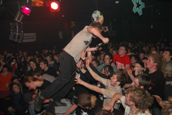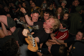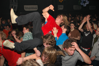 The first local band played, and the huge crowd just lost it completely. The second band was even better. After they were done we took the stage, the room was hot as hell and packed. One of the best shows ever, eventhough it was so hot and humid that the instruments wouldn't stay in tune. I even got to crowdsurf while playing at one point. The stage was also full of photographers, which was kind of weird but ok.